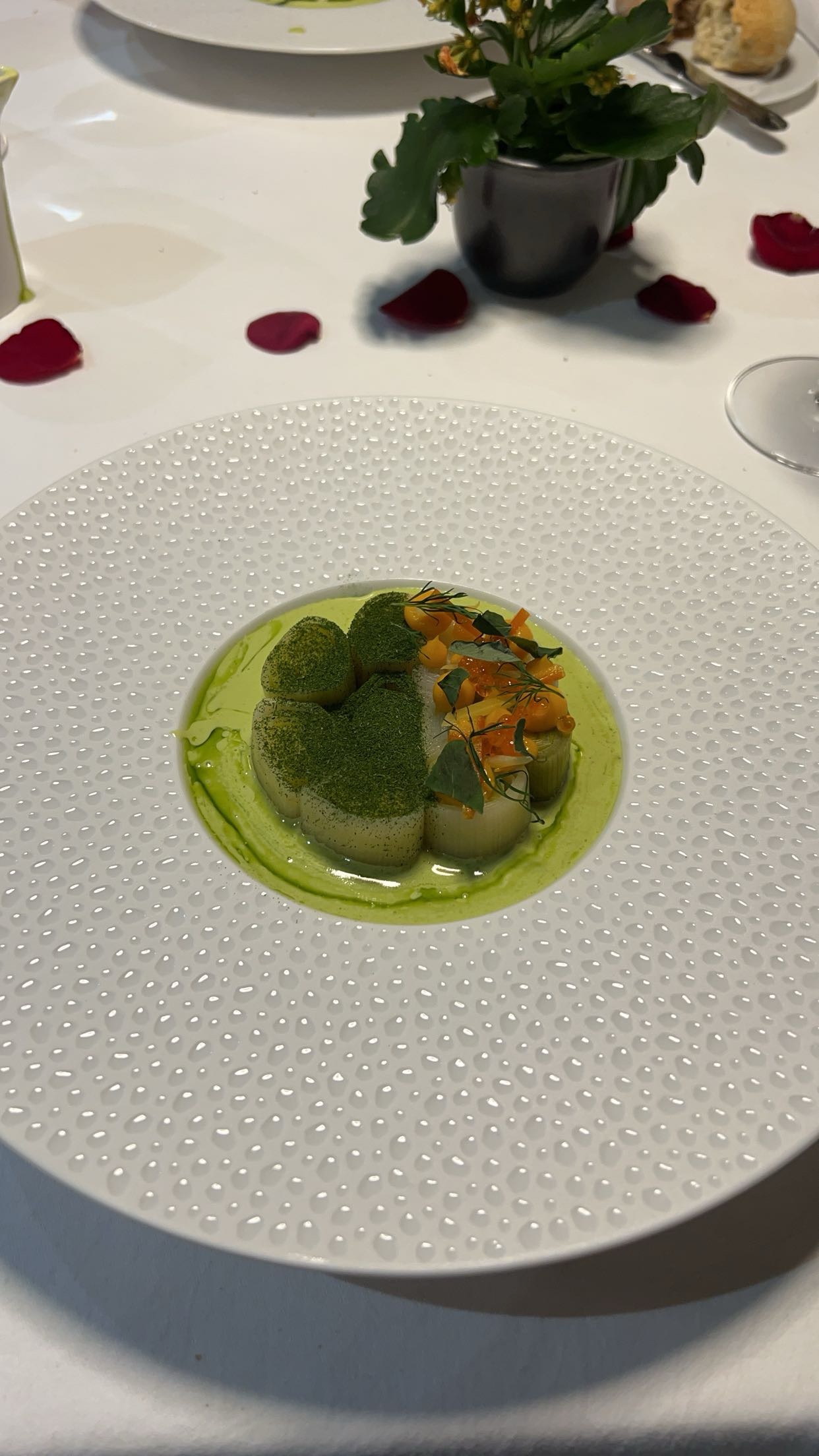 Très belle expérience qui va au-delà de l’assiette ! La cuisine est Excellente ! Le cadre est magnifique. L’accueil et le service à la fois chaleureux et raffinés, s’accordent parfaitement avec les lieux. La salle de restaurant est très agréable (grande baie vitrée et ambiance tamisée). Tout ceci met en valeur la cuisine de ce restaurant qui mérite son étoile !! Nous sommes venus en famille et avons choisis le menu dégustation (2 entrées 2 plats etc..). Les plats sont tous absolument Excellents jusqu’aux amuses bouches et pré-dessert (celui-ci a rempli son rôle à merveille pour nous remettre en appétit pour le dessert de part sa fraîcheur et son équilibre). L’accord mets vin est très bien ajusté. J’ai eu la chance de manger dans quelques restaurants étoilés, et celui-ci (qui ne l’est pas encore) en mérite une. Merci beaucoup au chef et à toute son équipe pour ce beau moment en famille dont nous nous souviendrons tous !